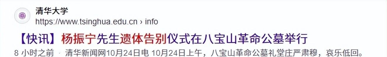 2.清华大学官网:【快讯】杨振宁先生遗体告别仪式在八宝山革命公墓举行